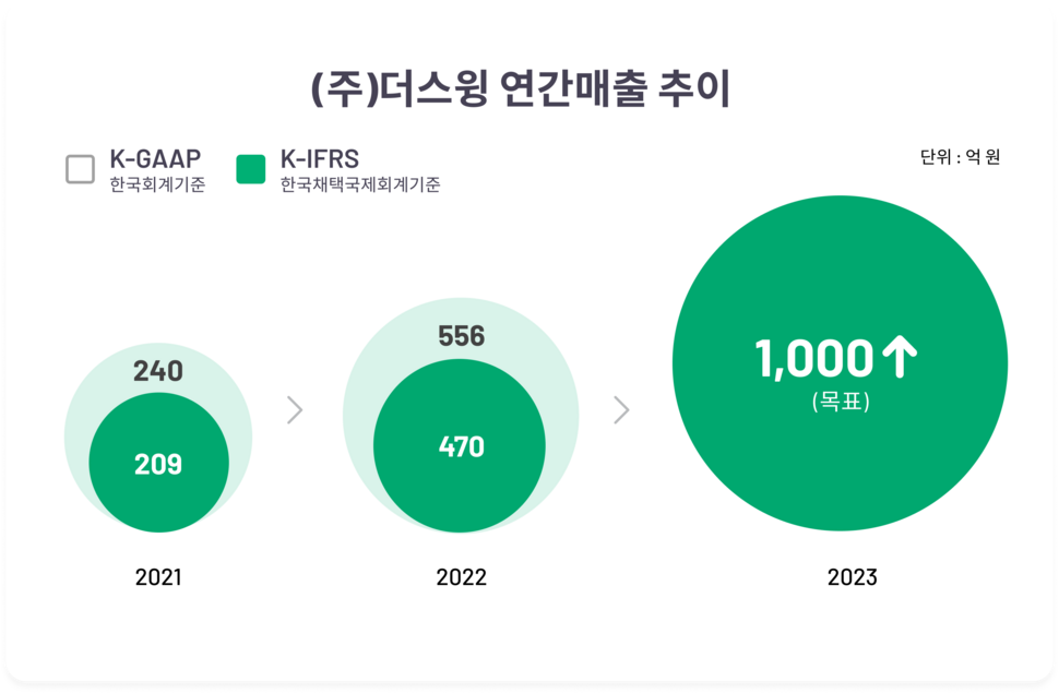 2022년 초 기준으로 3.5만 대에 불과하던 스윙의 운영기기는 2022년 말 기준 8.5만 대, 현재는 10만 대에 달한다. 실제로 성수기가 시작된 올해 4월 들어 스윙은 일 평균 10만 이상의 주행 횟수를 보이고 있다. 지난해 성수기 기준 스윙의 월 평균 이용유저(MAU)가 70만 정도였음을 감안하면, 올해 비약적 상승이 기대된다. 운영팀 이외에도 본사 근무인력의 50%를 개발자로 채울 정도로, 스윙은 인력 투자에 적극적이다.설립 8년차가 될 2026년 IPO(기업공개) 시장을 노리고 있는 스윙은 한 가지 기준을 더해 조정된 매출 역시 기입하고 있다. 한국채택 국제회계기준(K-IFRS)를 기준으로, 종속회사의 실적까지 포함시킨 연결재무제표에 따른 '포괄손익계산' 매출을 기재한 것이다. 상장기업들이 모두 K-IFRS에 따른 연결재무제표를 차용하고 있는 것을 감안한다면, 첫 감사보고서에 이를 채용한 것은 올바른 선택이었다는 평이다.