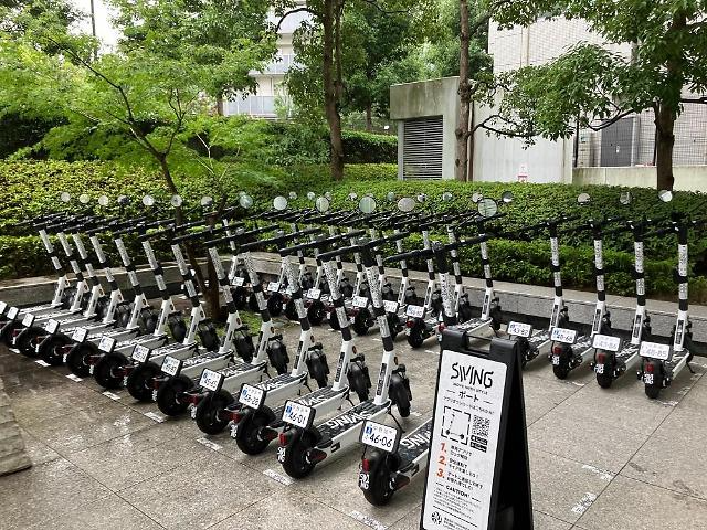 일본 도심 내 배치된 스윙 공유 킥보드의 모습 [사진=스윙]