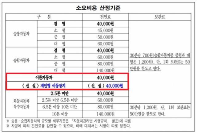 킥보드 1대가 견인될 때마다 건당 견인료 4만원에 견인소 보관료(30분당 700원)까지 더해 지불해야 한다. 규모가 큰 전동 킥보드 기업들은 이로 인해 한 주에 1000만원이 넘는 비용이 발생하는 것으로 알려졌다.