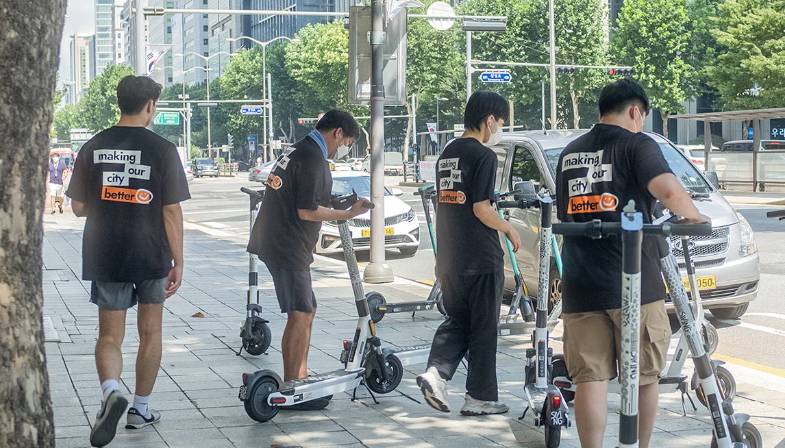 강남 일대 브랜드 구분 없이 전동킥보드 주차 재배치 지원