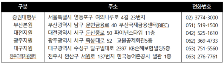 나. 제출장소 : 한국예탁결제원 증권대행부 및 지원