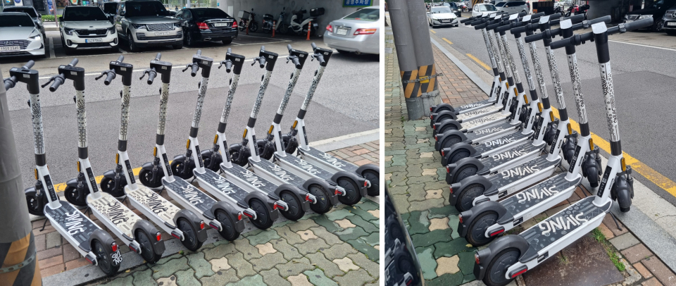 (7일 서울 압구정역 인근에 주차돼 있는 스윙 전동 킥보드 모습 / 사진=염현아 기자)