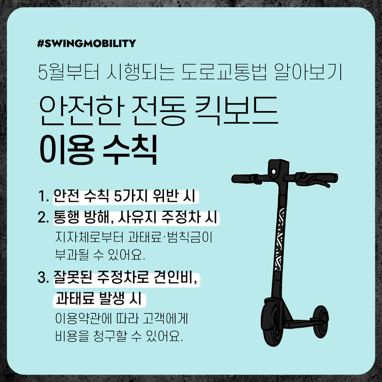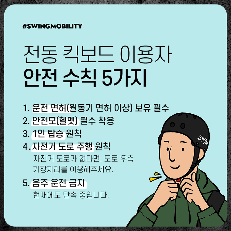 안전한 이용을 위해 전동 킥보드 이용 수칙을 알려드려요.