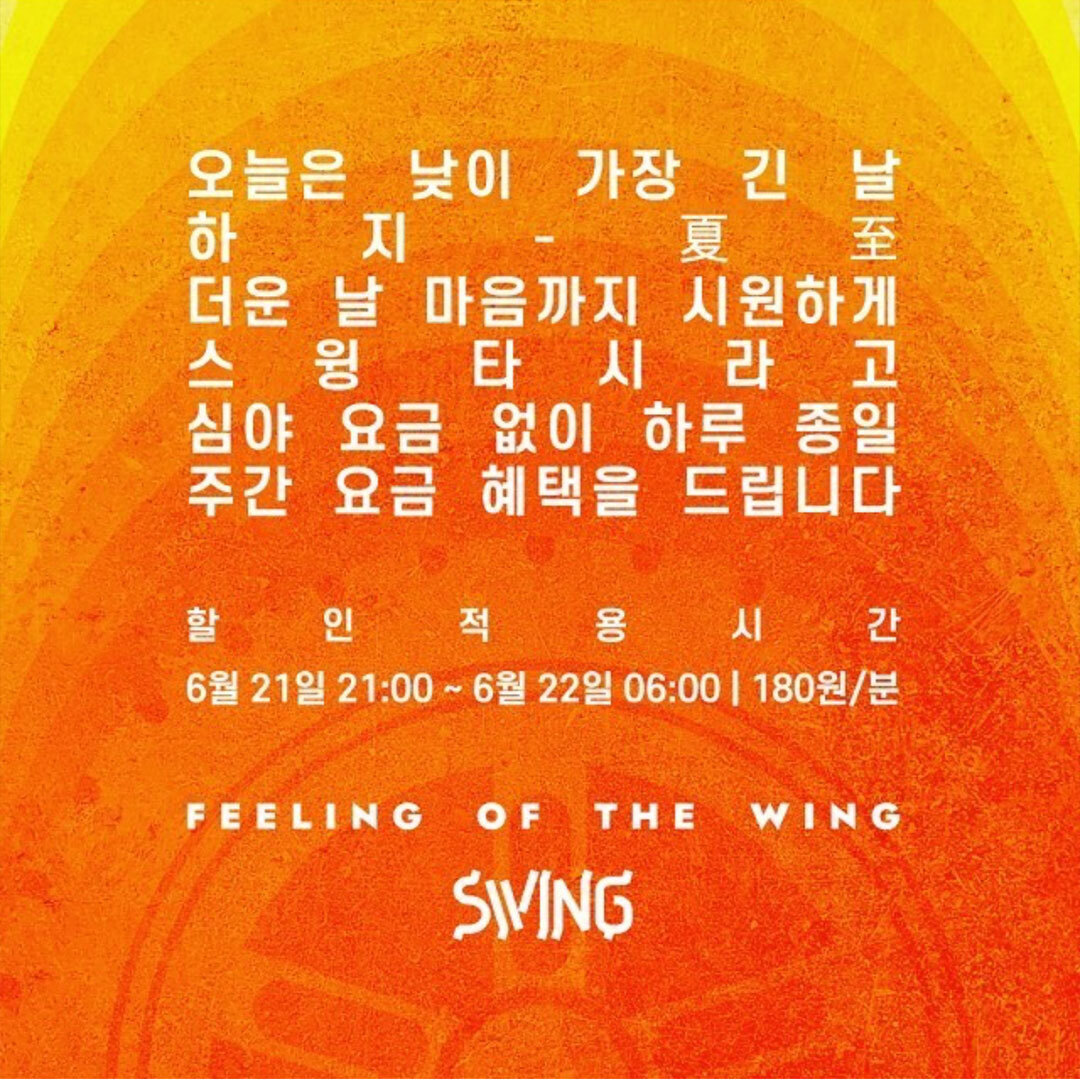 오늘 SWING은 하루 종일 주간 요금!