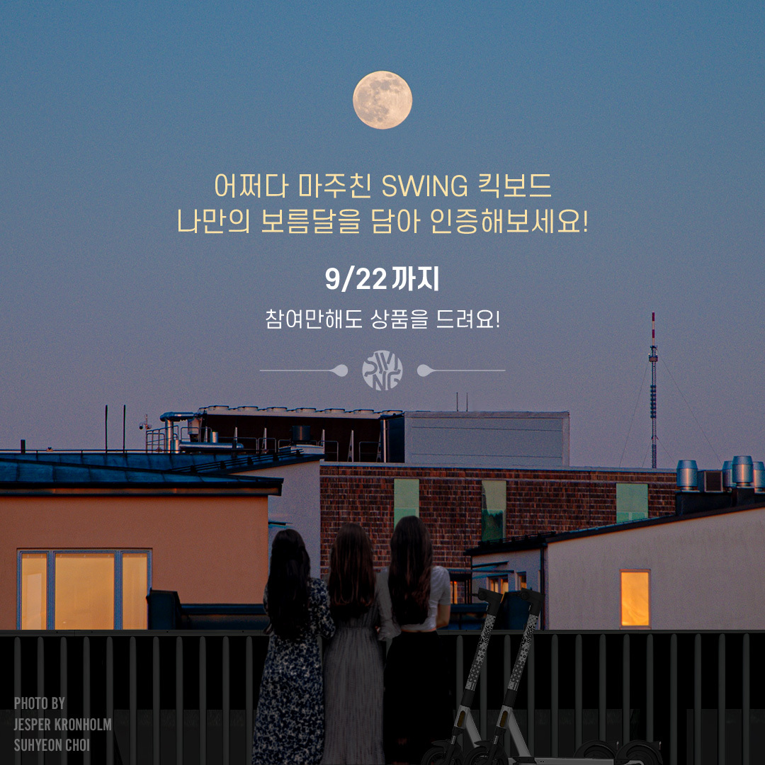 2. 나만의 보름달과 함께한 SWING 킥보드 사진을 @swingmobility 태그하여 인스타그램에 업로드